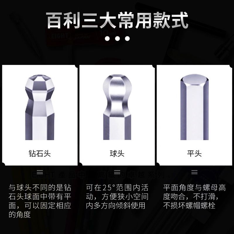 日本原装进口百利内六角扳手套装球头平头6角螺丝刀9件套加硬公制