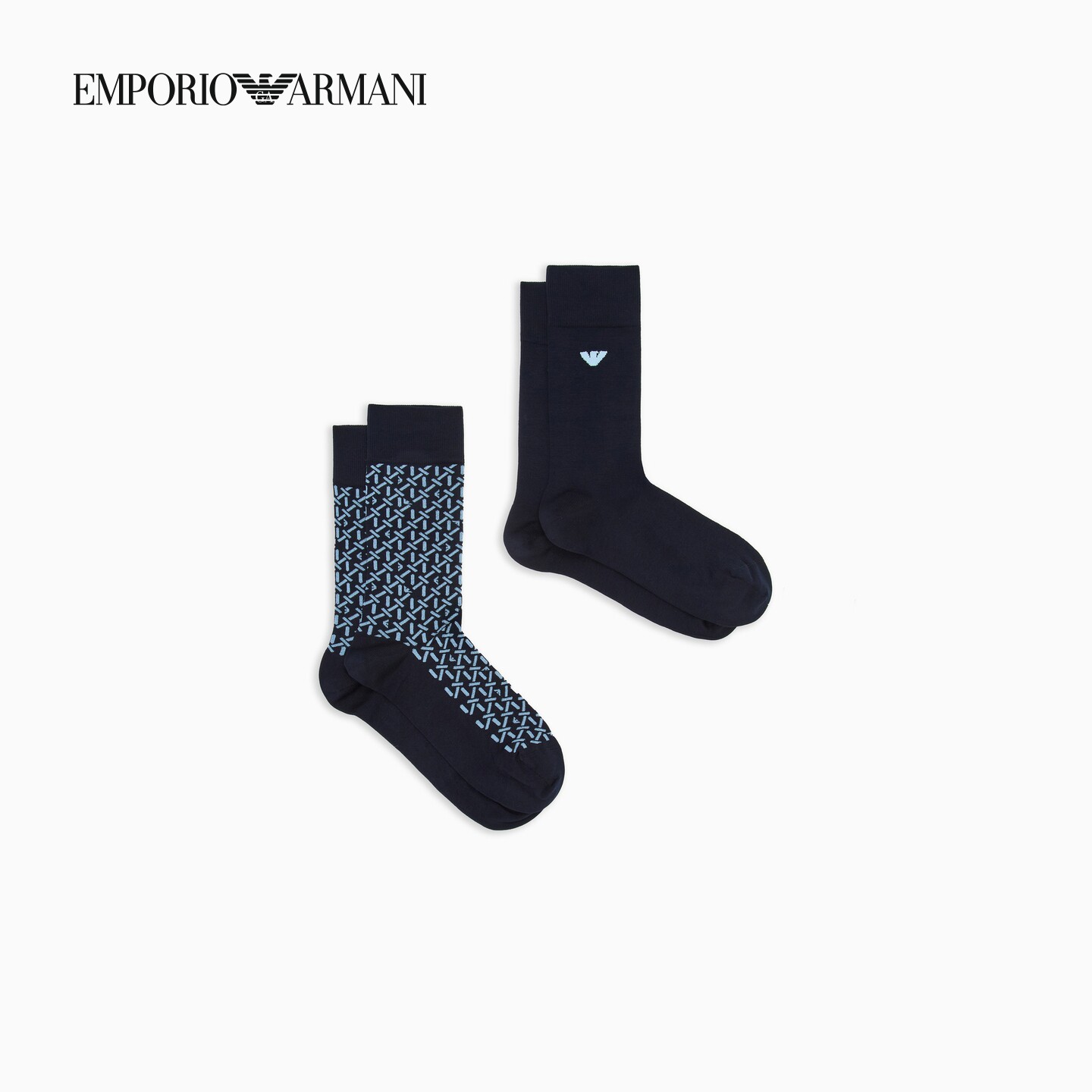 EMPORIO ARMANI/阿玛尼26春季新款男士两双装撞色提花中筒袜套装