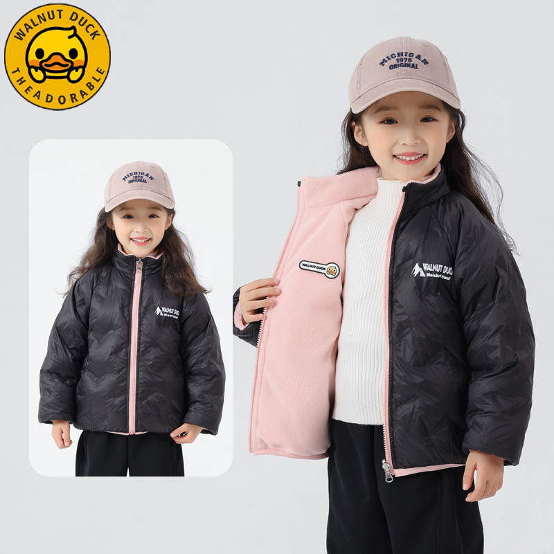 小黄鸭儿童秋冬外套中大童轻薄羽绒服男女童保暖中小童宝宝双面穿