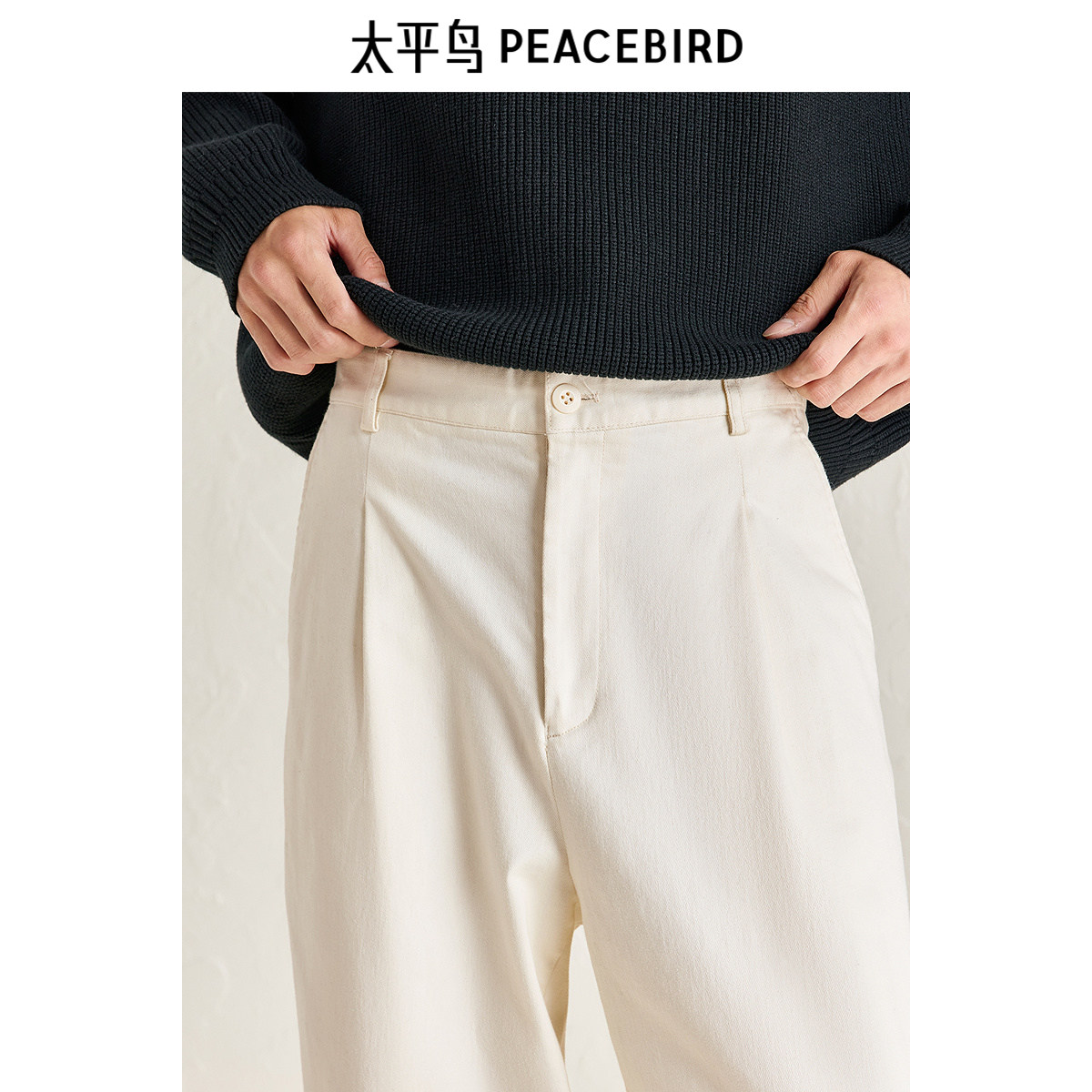 【断码钜惠】太平鸟男装休闲裤冬季宽松直筒阔腿裤百搭刺绣长裤