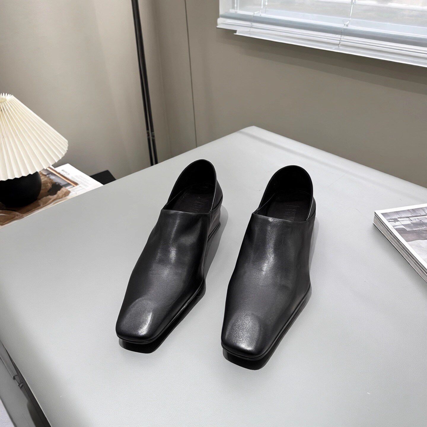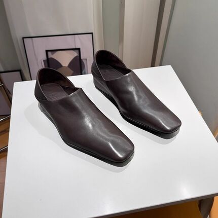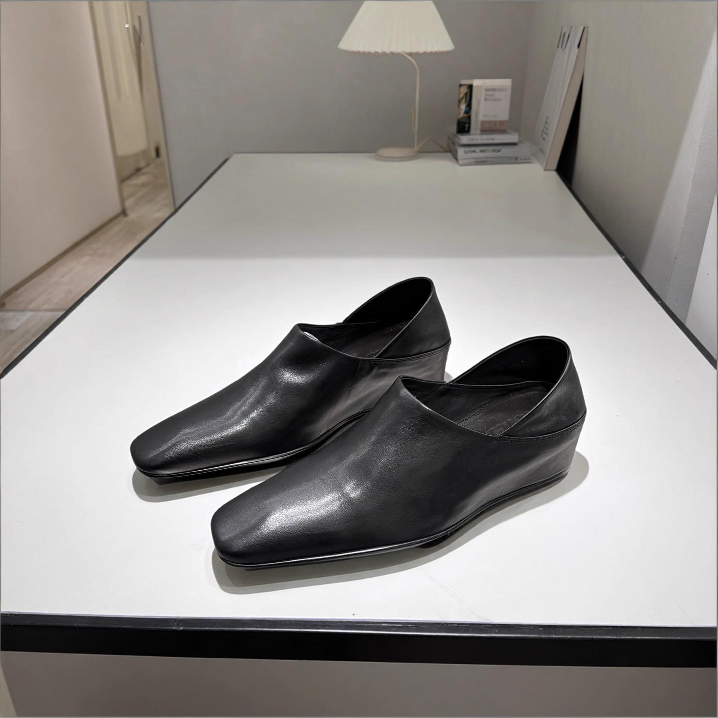 头层水洗牛皮 欧洲站女鞋单鞋2026春坡跟内增高一脚蹬方头小皮鞋