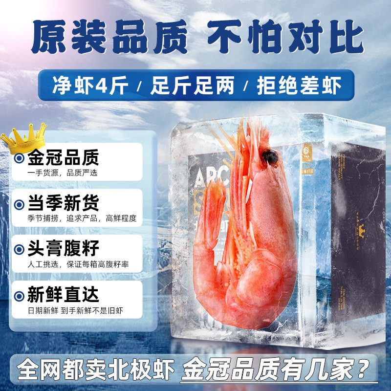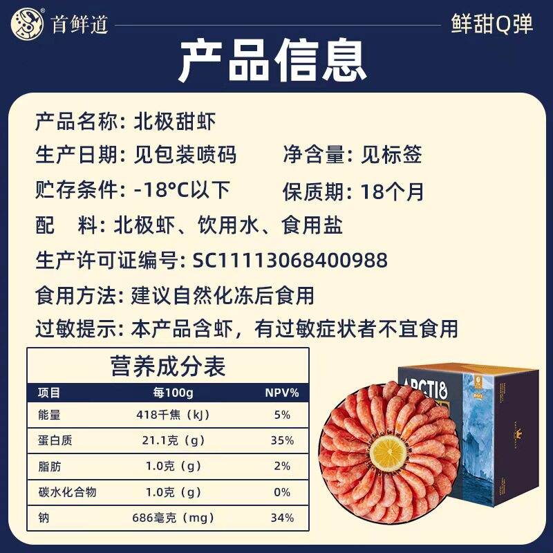 北极虾新鲜甜虾冰虾大虾腹籽甜虾非刺身海鲜水产鲜活冷冻即食头