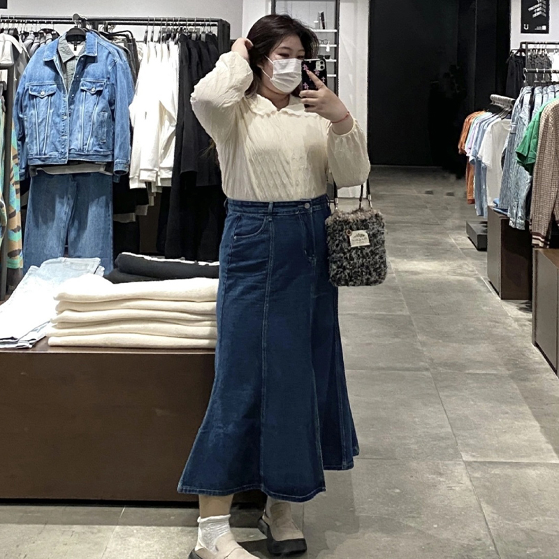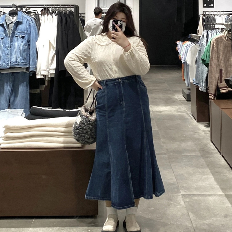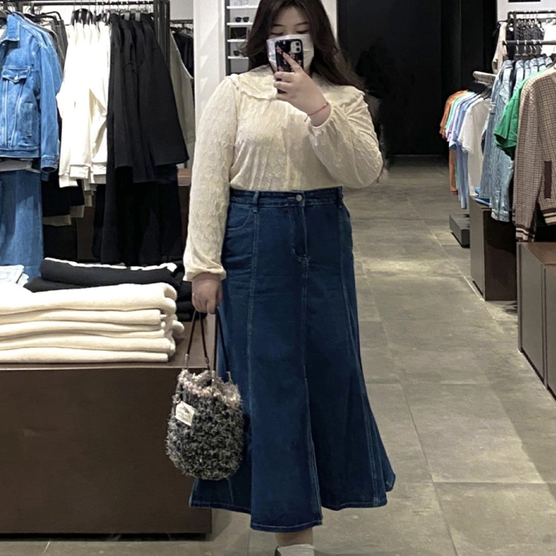 300斤大尺码女装高腰牛仔裙半身裙夏季胖mm中长版a字显瘦鱼尾长裙