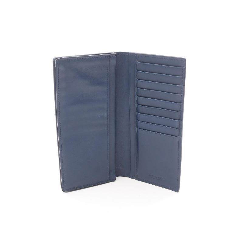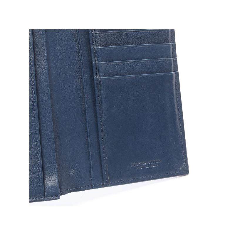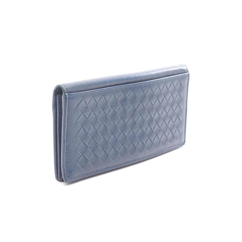 中古Bottega Veneta葆蝶家男B级9新bi-fold双折羊皮长钱包蓝色