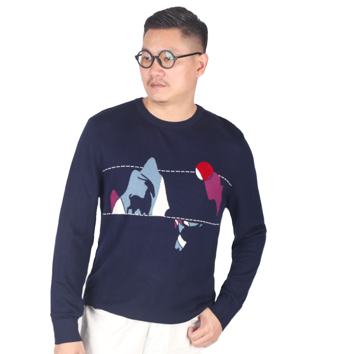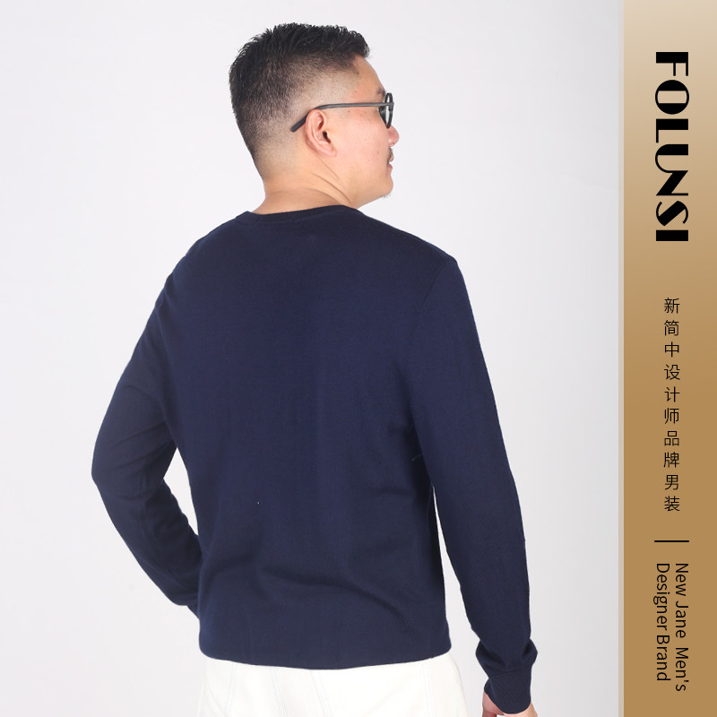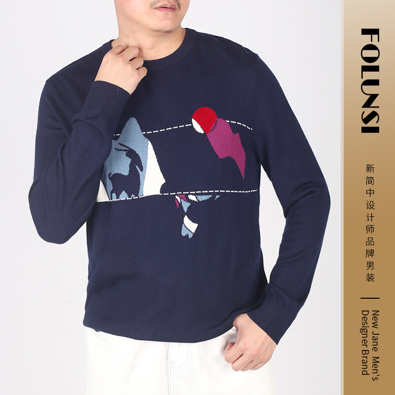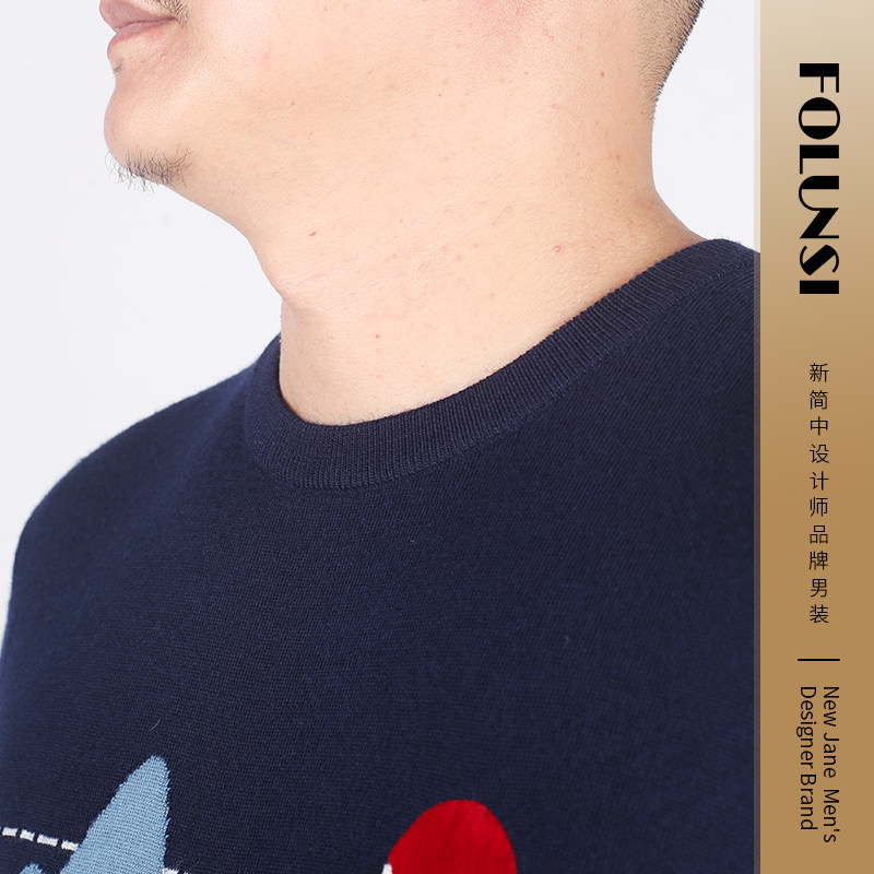 佛伦斯folunsi秋冬男士毛衣羊毛衫修身休闲套头刺绣圆领打底