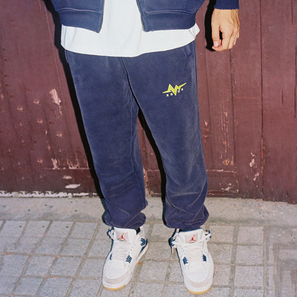 MindError 水洗做旧松紧腰秋冬加绒束脚卫裤男女宽松直筒休闲长裤