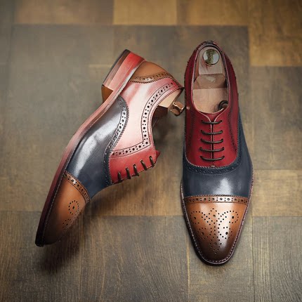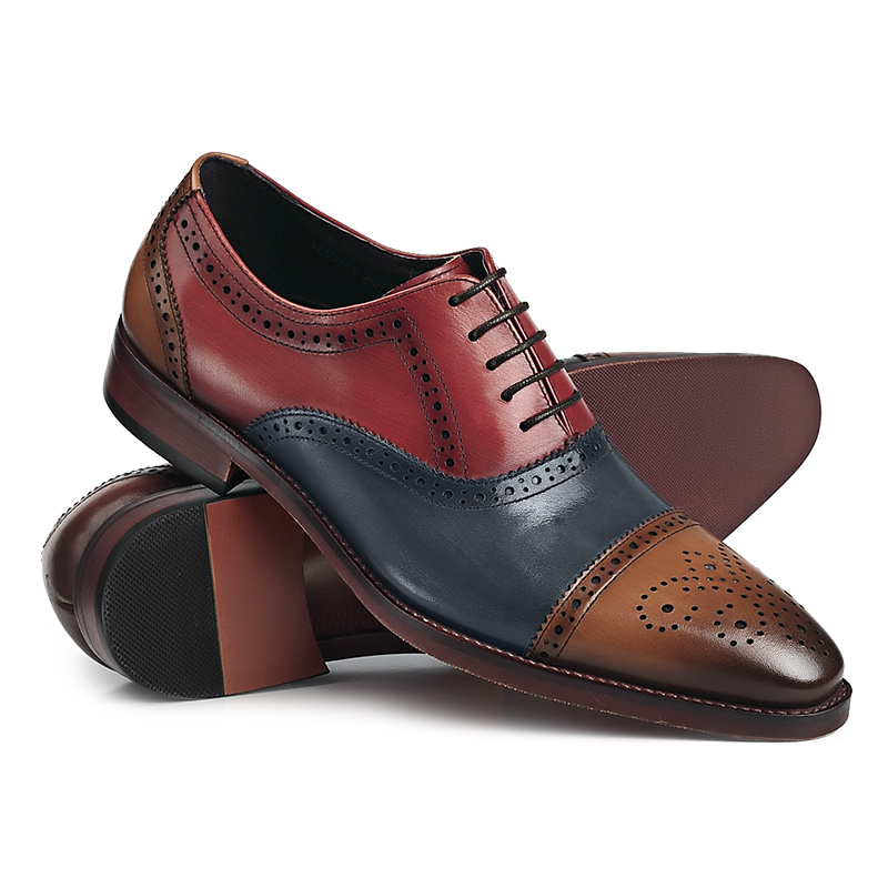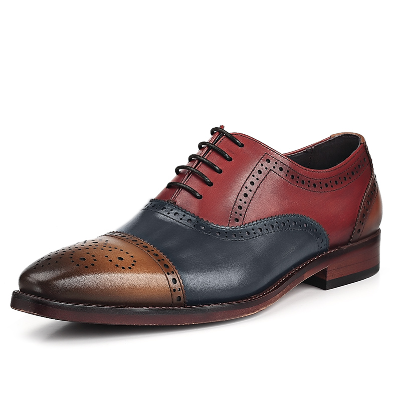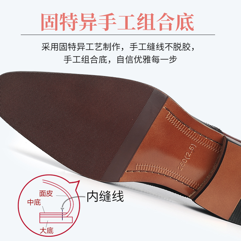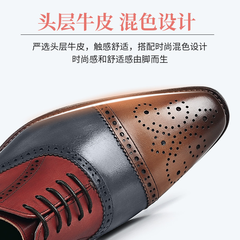 VQGT新款真皮布洛克雕花男鞋牛津鞋三接头皮鞋男尖头固特异手工鞋