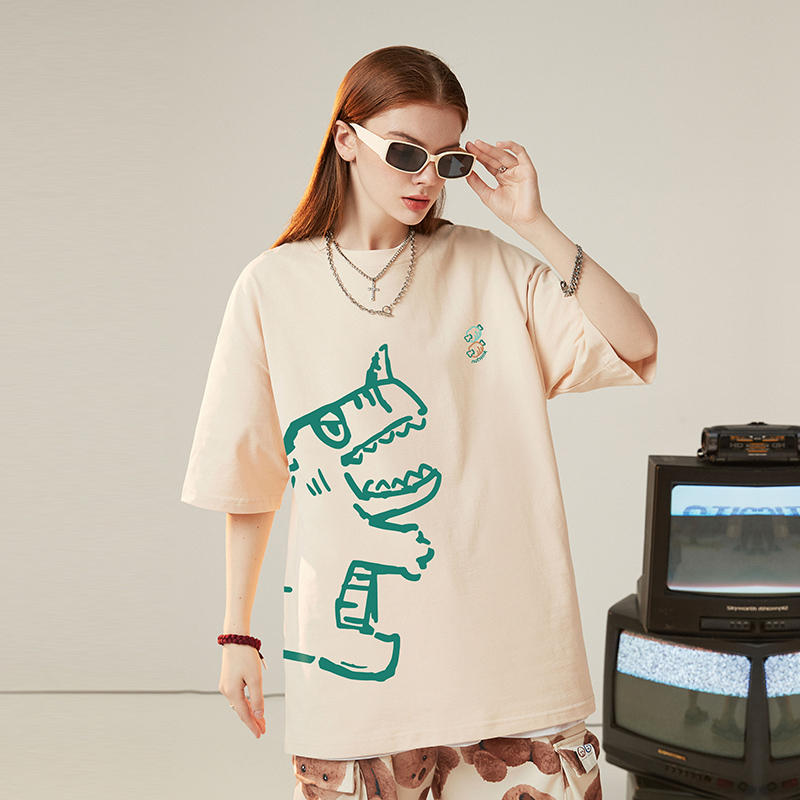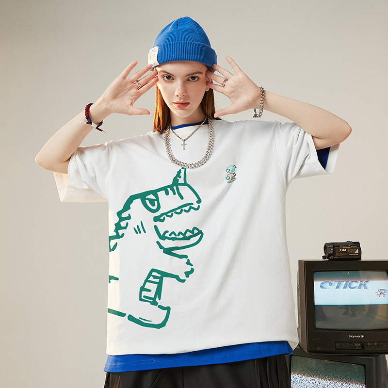 国潮设计感小恐龙短袖T恤男潮牌ins潮流可爱BF中性风宽松夏季半袖