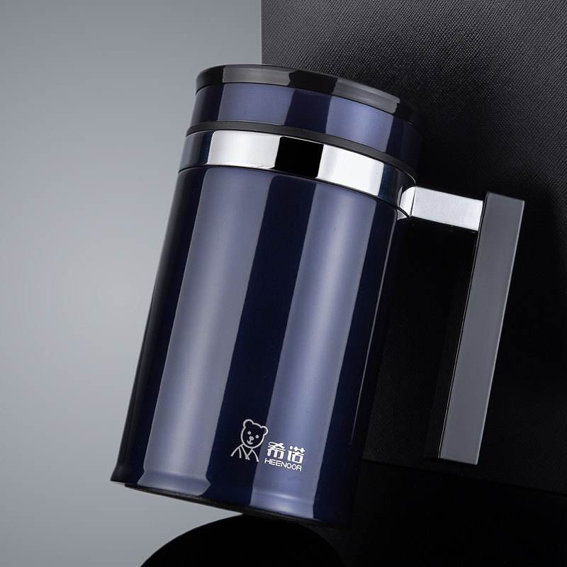 希诺保温杯大容量高档商务办公宽口水杯茶水分离带手柄不锈钢杯子