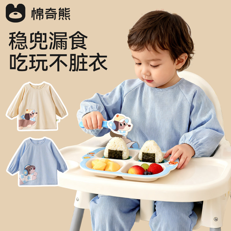 儿童罩衣2025新款男女童防水防污反穿衣婴儿辅食饭兜幼儿园围裙
