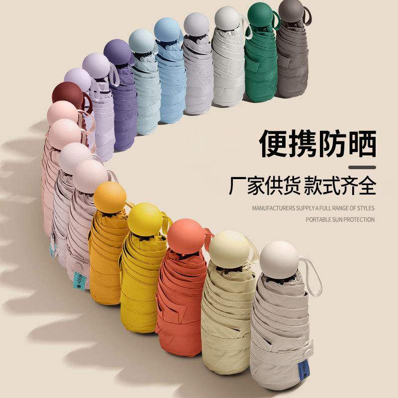 新品 五折黑胶防晒遮阳伞女生小清新胶囊伞便携口袋折叠晴雨伞大
