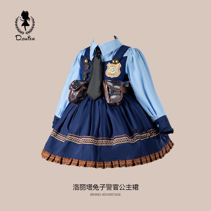 女童公主裙秋冬朱迪兔子警官儿童衣服cos加绒加厚迪士尼生日裙子
