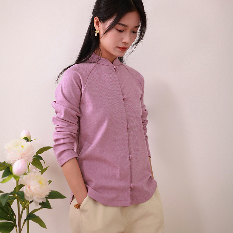 原创设计通勤文艺中国风盘扣立领衬衣唐装中式上衣针织衬衫女春秋