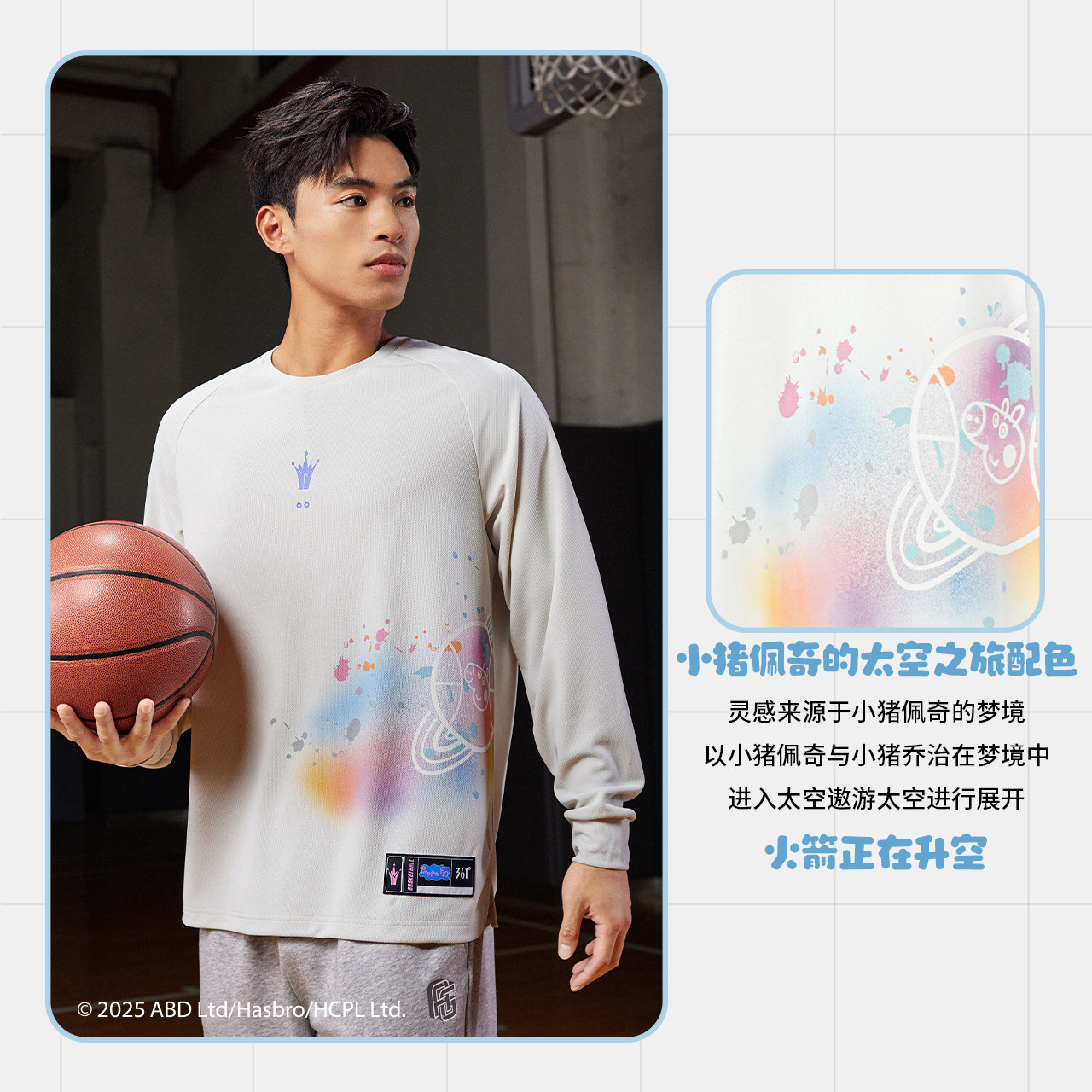 361小猪佩奇联名款运动t恤男2025夏季新款透气舒适上衣圆领长T恤