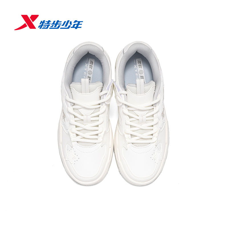 特步儿童星星鞋女大童鞋2025冬季新款小白鞋皮面板鞋675414314014