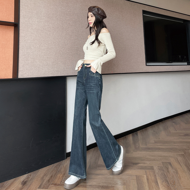 显瘦喇叭牛仔裤女长裤春秋季高腰微喇通勤穿搭时尚小个子微喇裤子