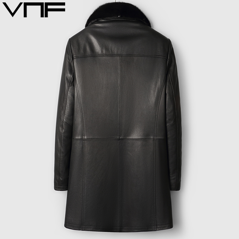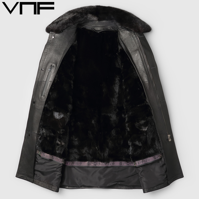 海宁山羊皮真皮皮衣男中长款水貂内胆皮毛一体中年皮草风衣外套冬