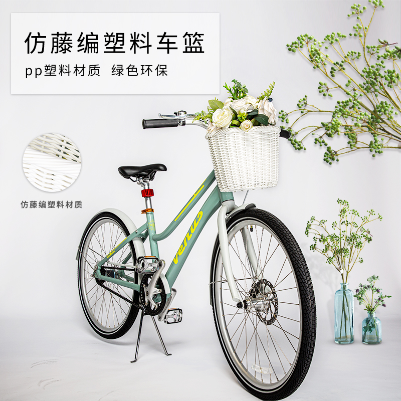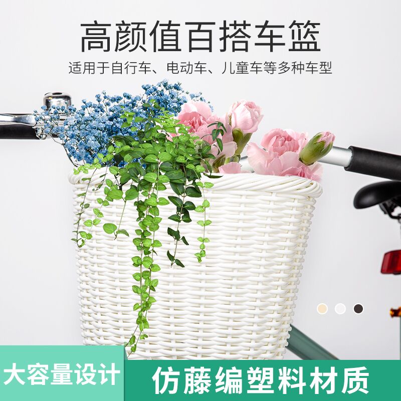 自行车新款防雨中号单车前置篮y仿藤编塑料车筐折叠车电瓶电动车