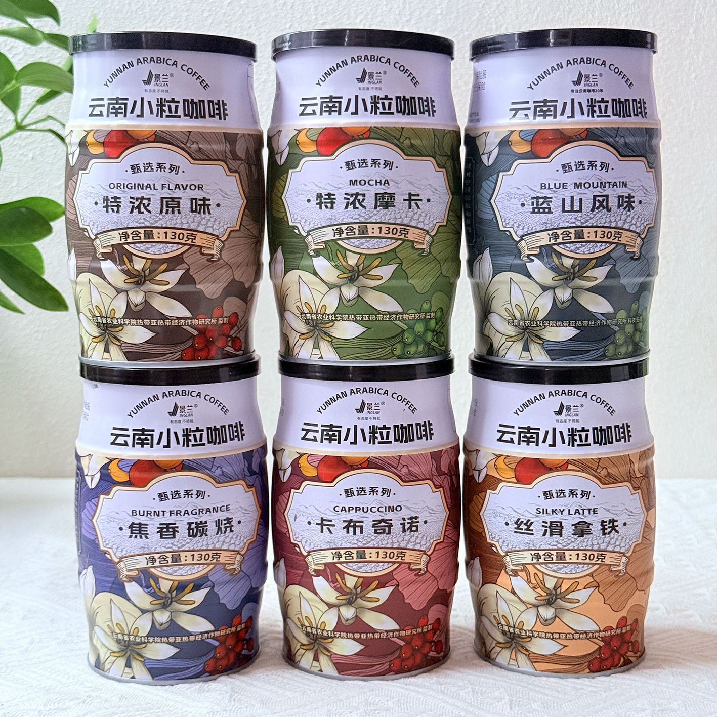 景兰130g小粒咖啡 云南特产 速溶咖啡 3合1罐装蓝山特浓炭烧拿铁