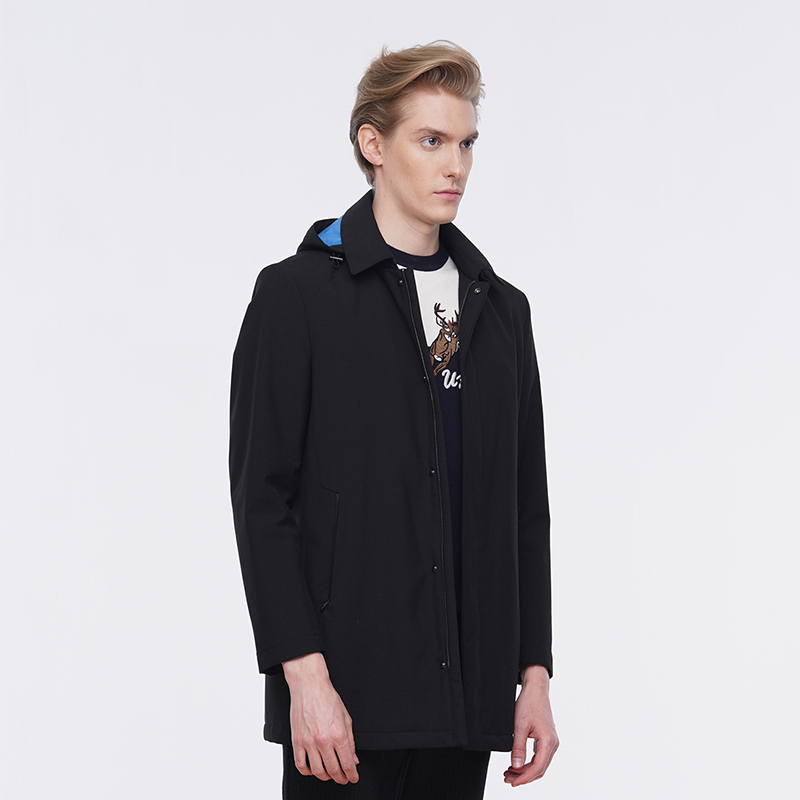佛伦斯folunsi新款时尚男装秋冬连帽保暖可拆卸休闲拉链纯色棉衣