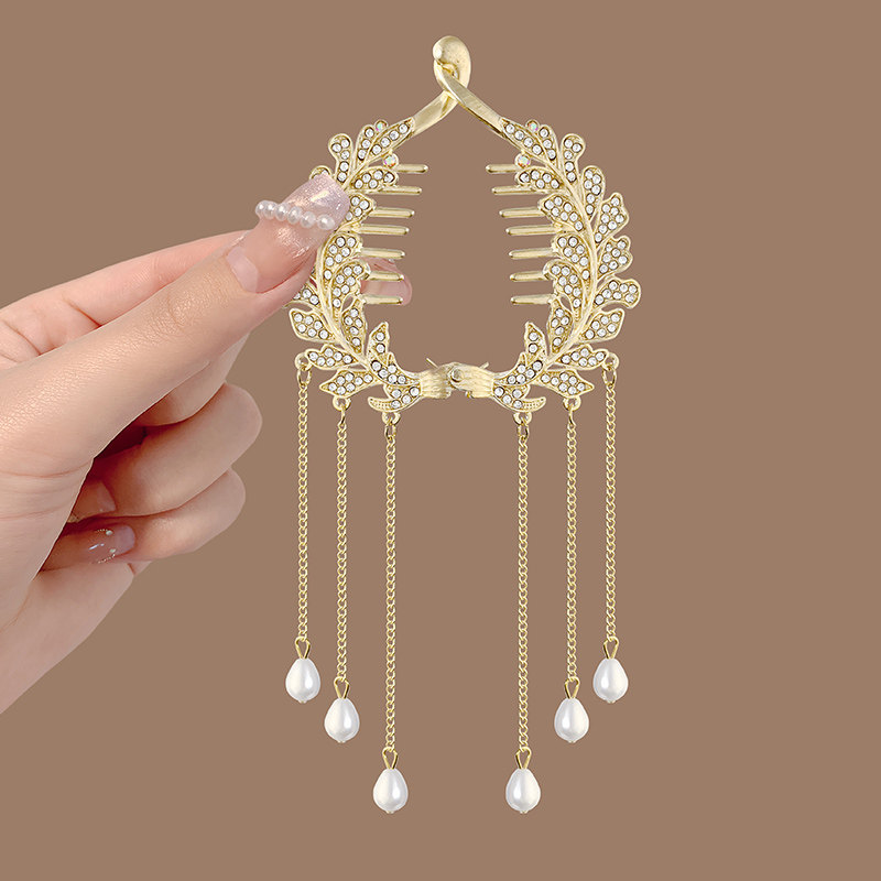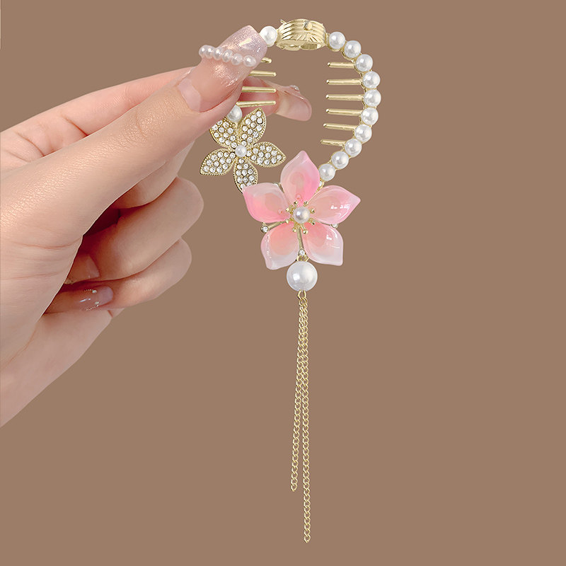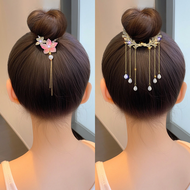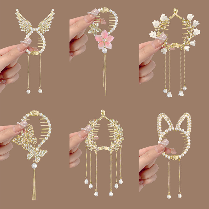珍珠水钻流苏马尾扣夹丸子头固定神器蝴蝶花朵发夹发饰盘发扣头饰
