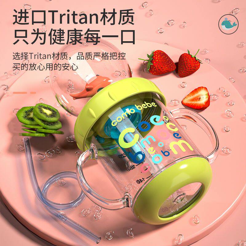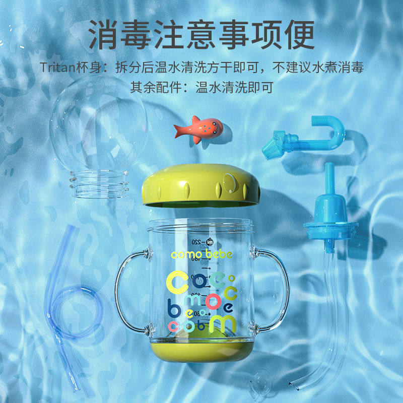 Comebebe 小鲸鱼喷水杯 儿童趣味潜水杯 带手柄宝宝夏季吸管水杯