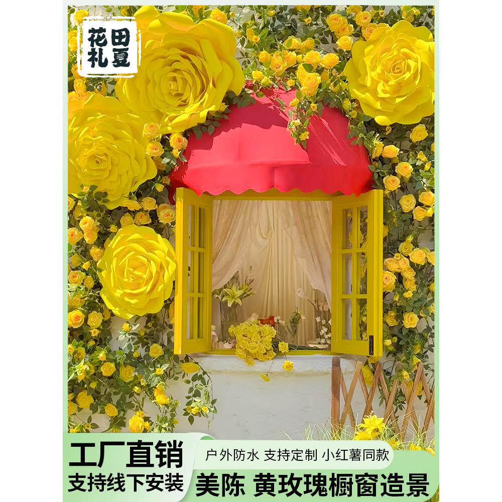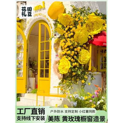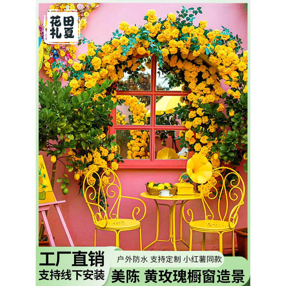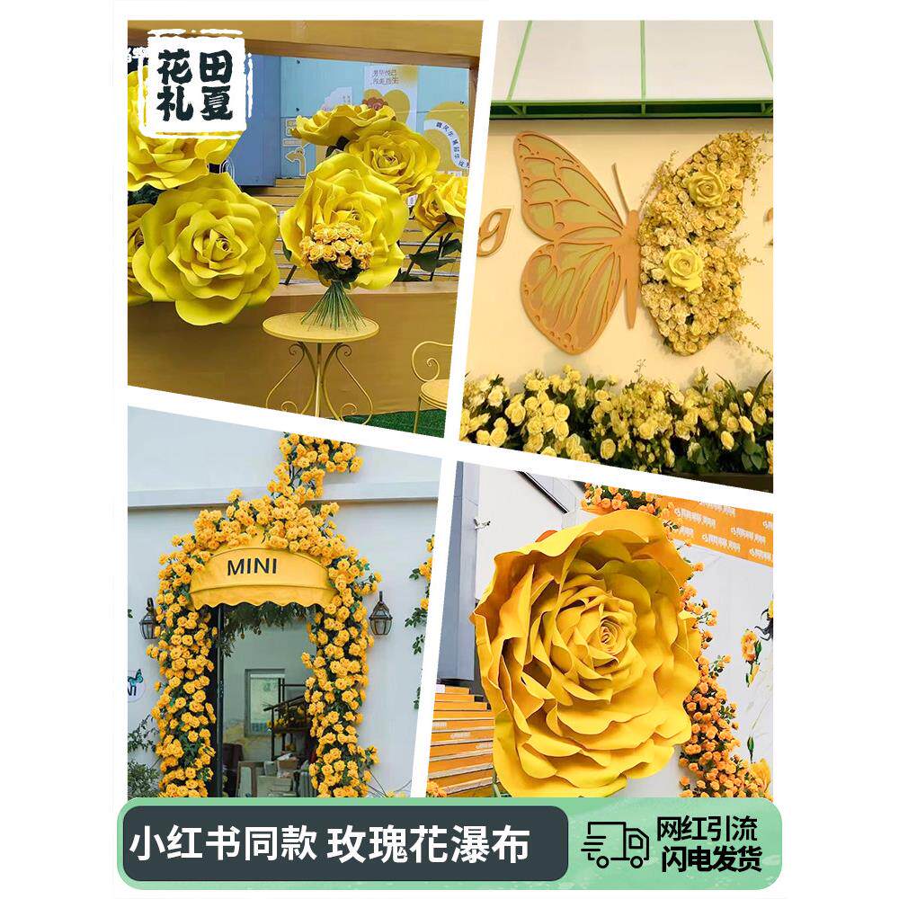 巨型黄色玫瑰假花藤条藤蔓彷真花墙背景橱窗摆件美陈网红打卡造景