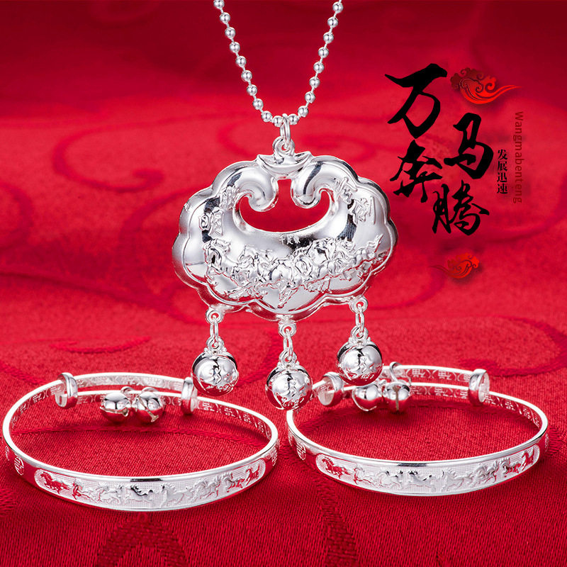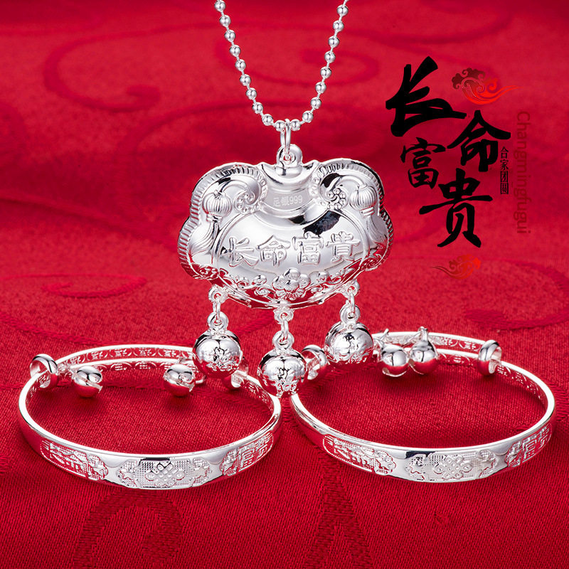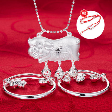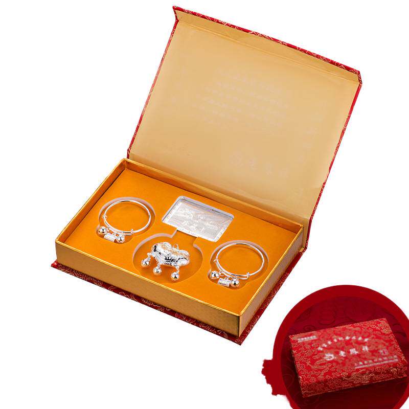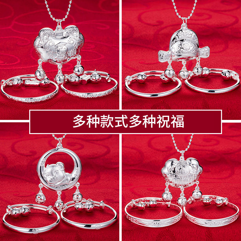 兔年宝宝婴儿银手镯镀足银儿童脚镯首饰新生儿满月银饰套装