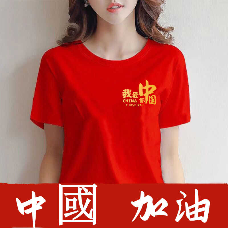 2025夏季新款短袖t恤女纯棉大码半袖上衣男女中国风红色烫印女装