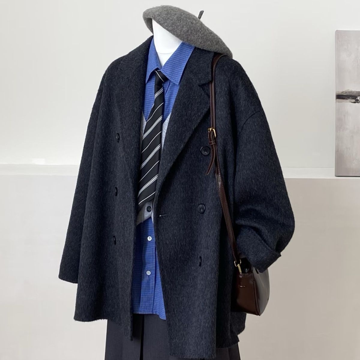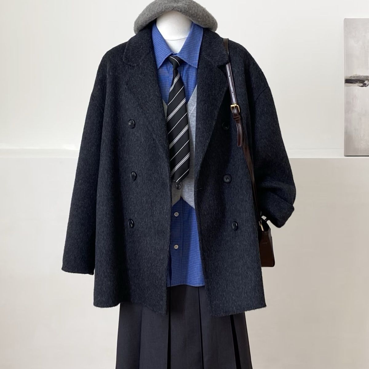 2025秋冬高级新款双面羊绒大衣短款小个子西装羊毛宽松韩系外套女