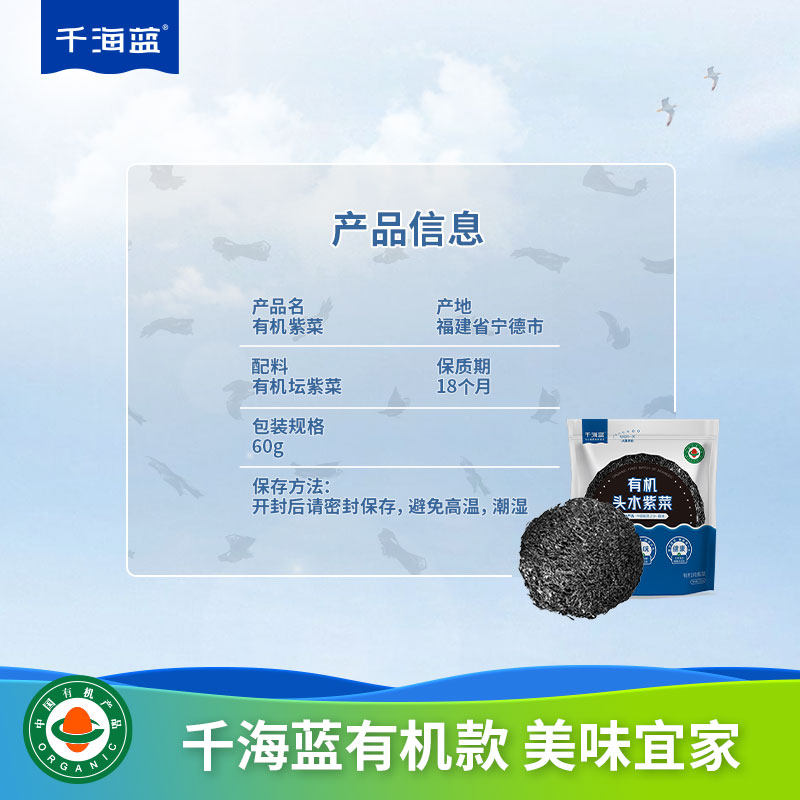 千海蓝有机头水紫菜干货免洗无沙冲泡即食福建霞浦宝宝儿童纯紫菜