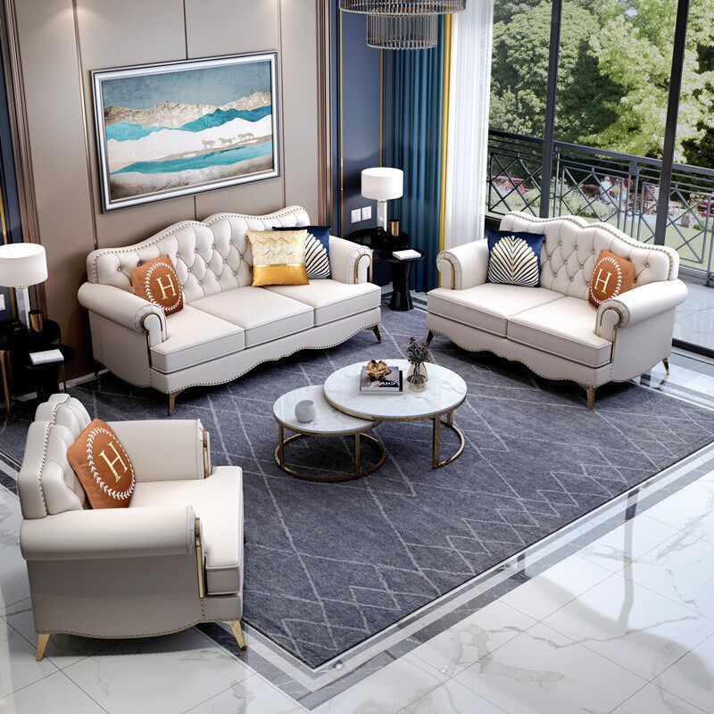 速发美式轻奢后金简港式属约意式客三小户型别墅厅人皮艺拉扣沙发