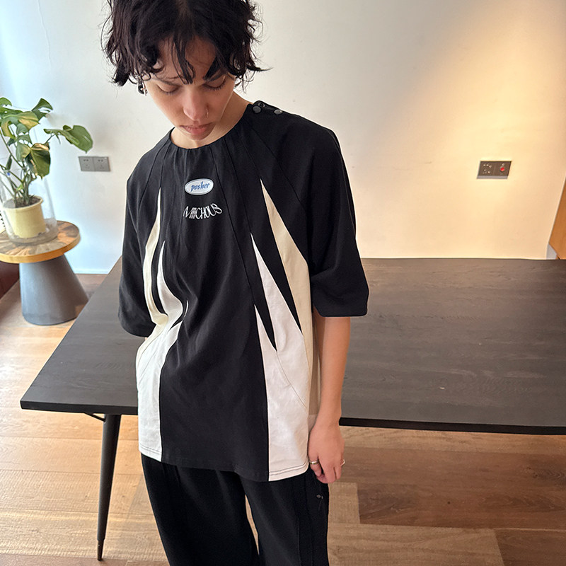 MIICHOUS米丘寺圆领拼接短袖T恤
