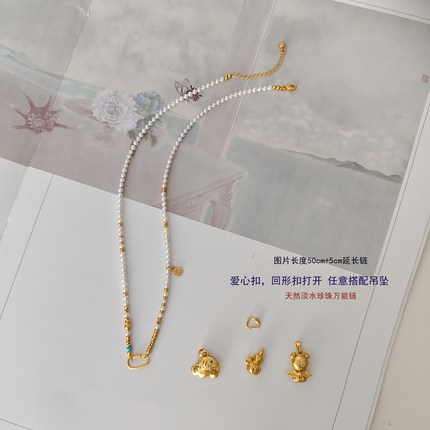天然淡水珍珠项链万能链吉象黄金吊坠万能链佛牌吊坠可拆卸毛衣链