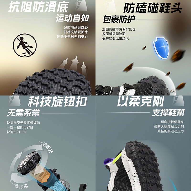 ABC SHIELD男童运动鞋透气网面防滑儿童跑步鞋旋纽扣软底登山鞋子