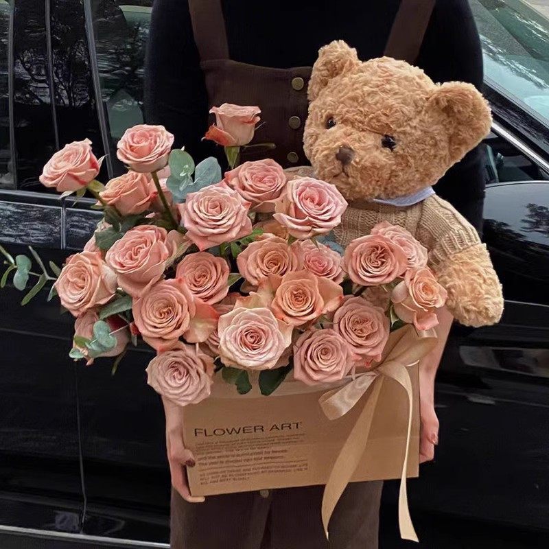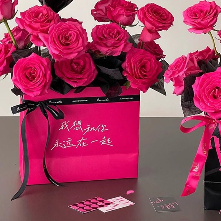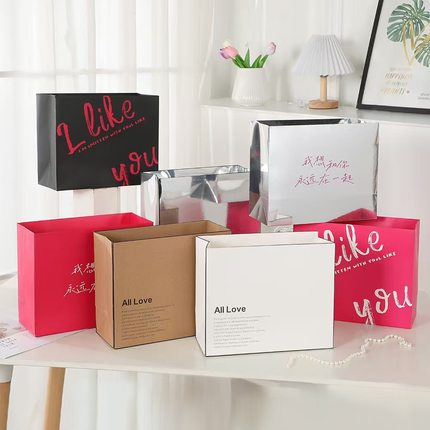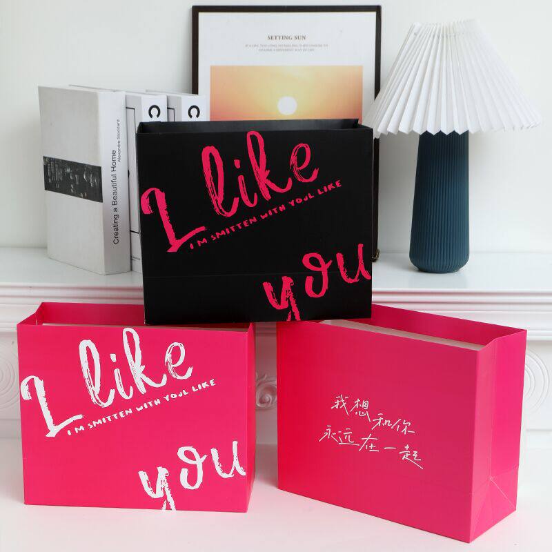 网红鲜花礼物抱抱袋正方形鲜花花束包装手捧袋18寸爱心气球花艺