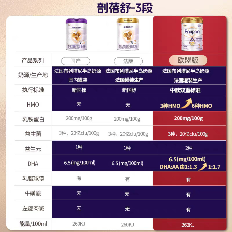 圣元优博剖蓓舒欧盟白金版3段 幼儿牛奶粉HMO乳铁蛋白hmo进口900g