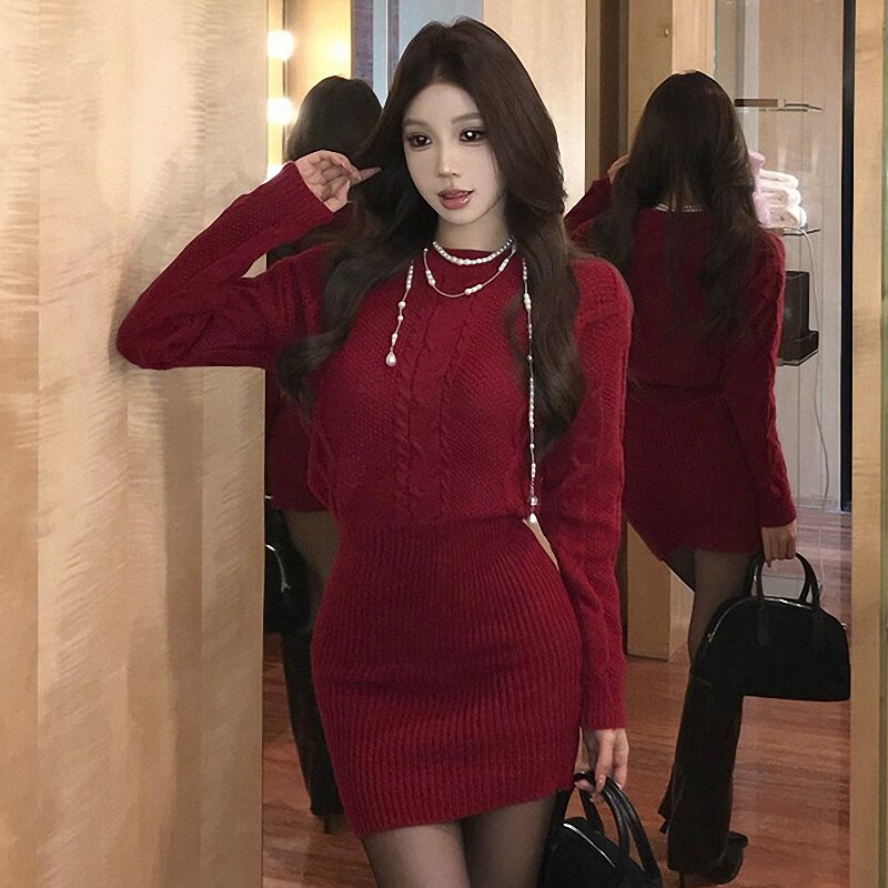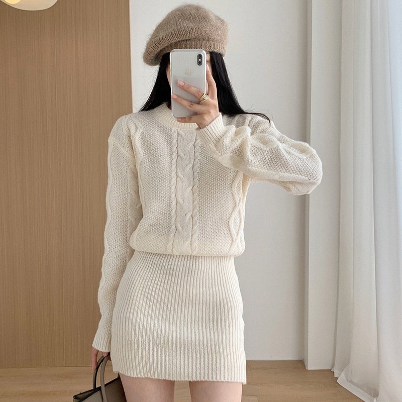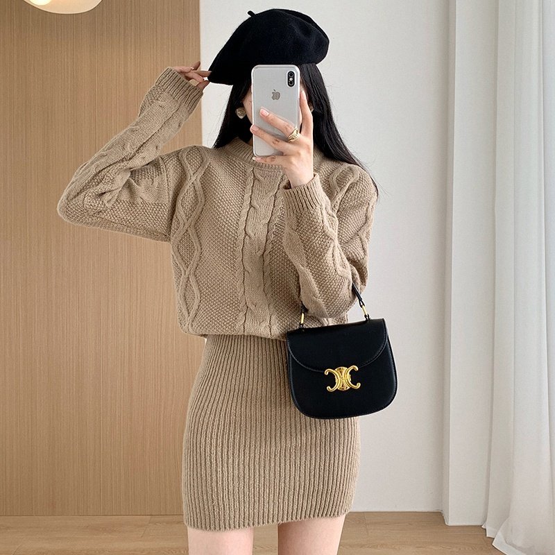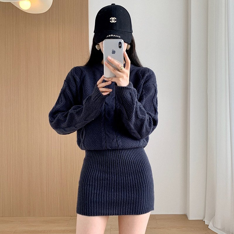 秋冬女装批新款发百搭气质打底包臀短款菱形麻花针织毛衣连衣裙潮