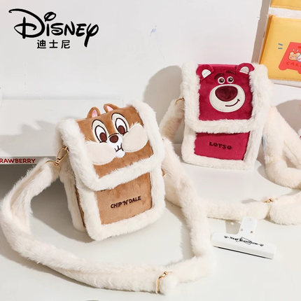 正版奇奇蒂蒂迪士尼秋冬超火小包包草莓熊毛绒单肩逛街斜跨手机包