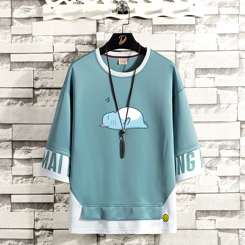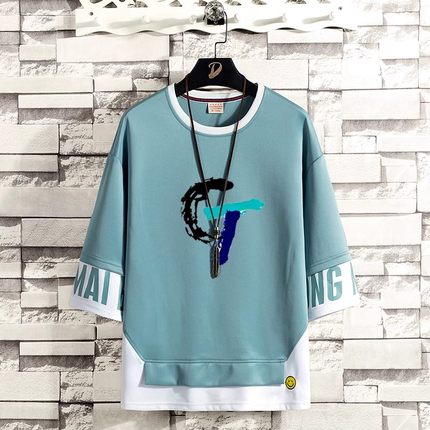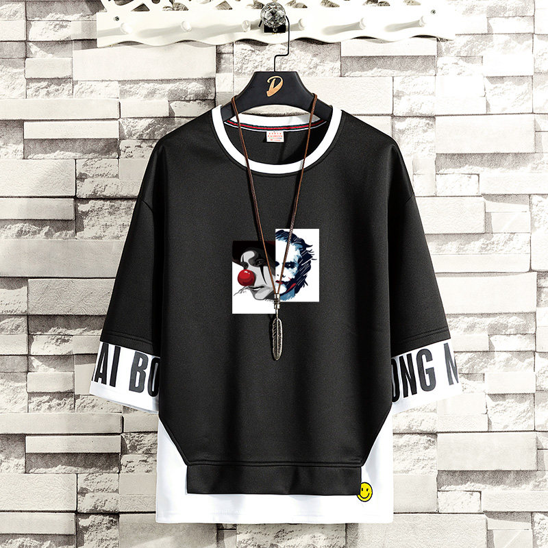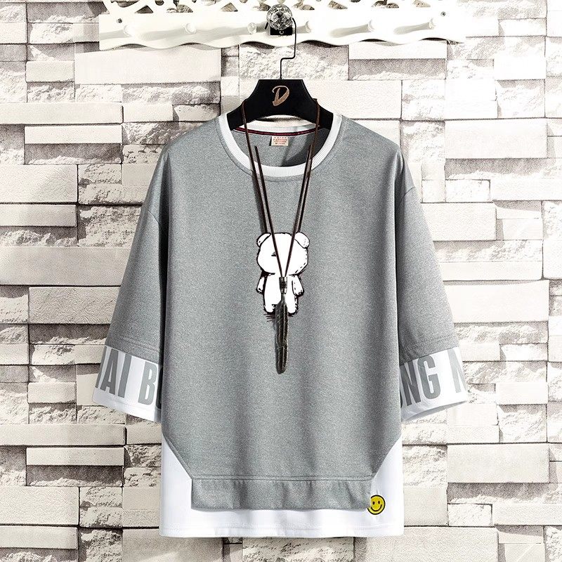 男士五分袖短袖T恤春夏季韩版潮流学生宽松港风上衣7七分半袖体恤