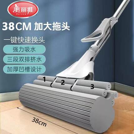 美丽雅海绵拖把2025新款家用一拖净吸水免手洗胶棉头拖布拖地神器