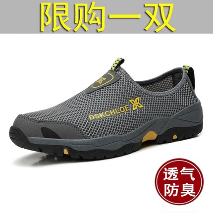 清仓特价男鞋夏季一脚蹬透气网面鞋男士休闲网鞋中老年爸爸布鞋男