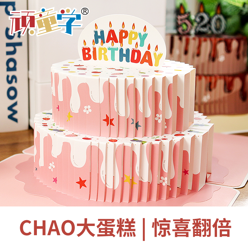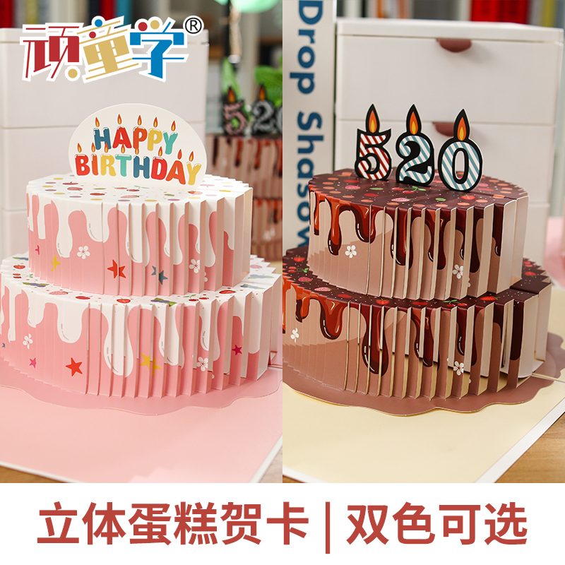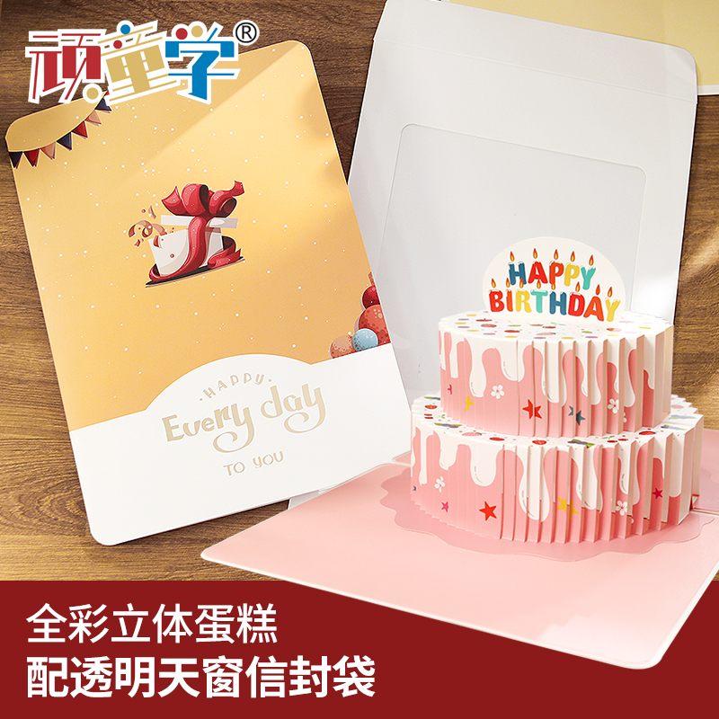 超大A4生日蛋糕立体贺卡3D蛋糕大号惊喜送闺蜜礼物祝福纪念带信封