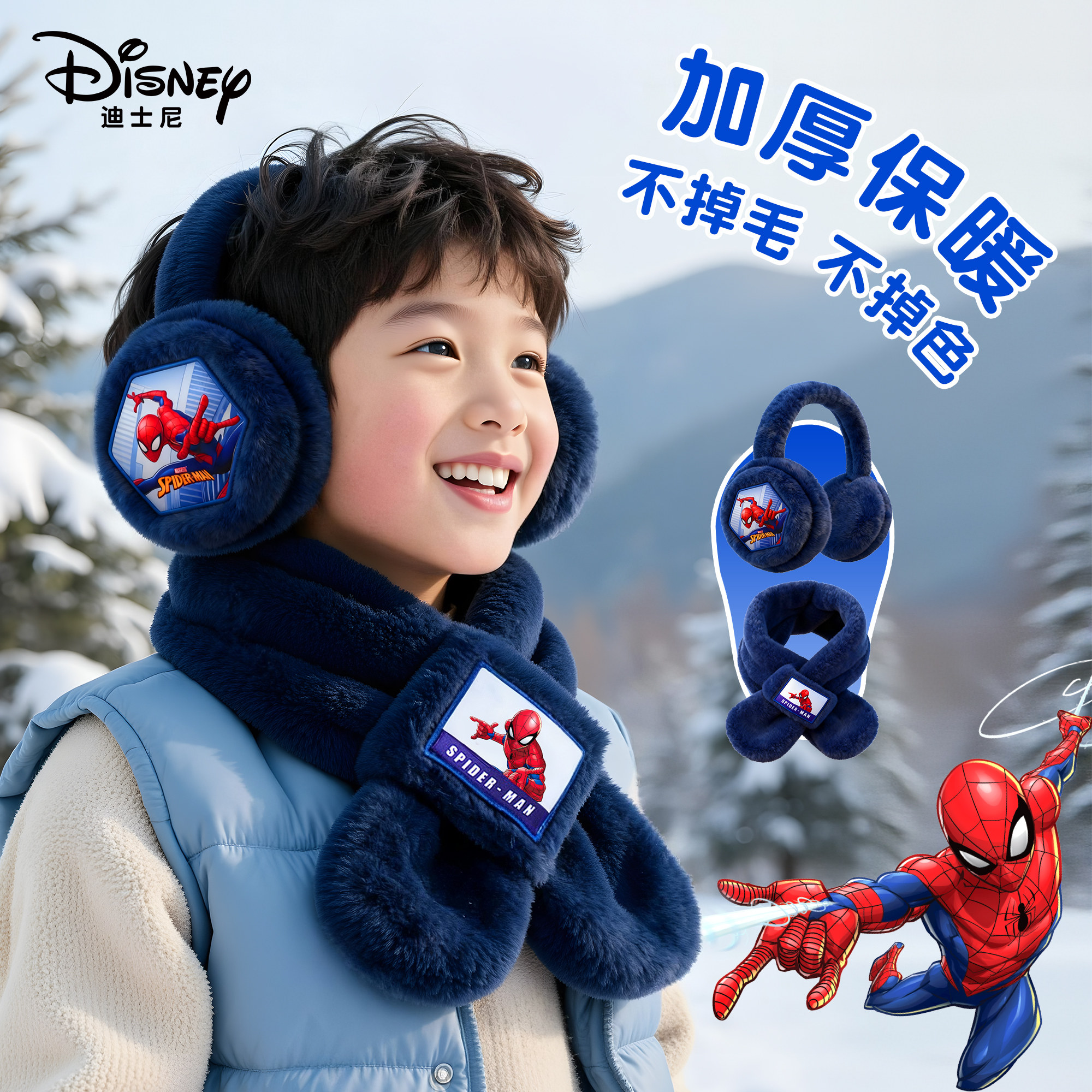 迪士尼冬蜘蛛侠耳罩男童儿童加厚保暖护耳加绒防寒男孩可折叠耳套