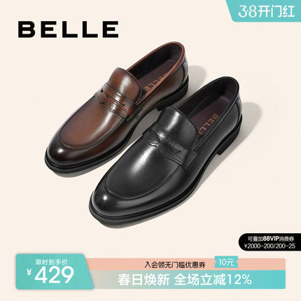 百丽男鞋休闲商务皮鞋男秋季乐福鞋套脚一脚蹬软底爸爸鞋A0632AM2
