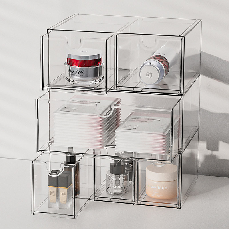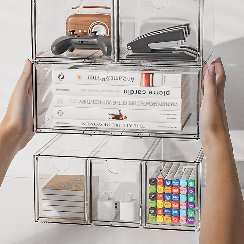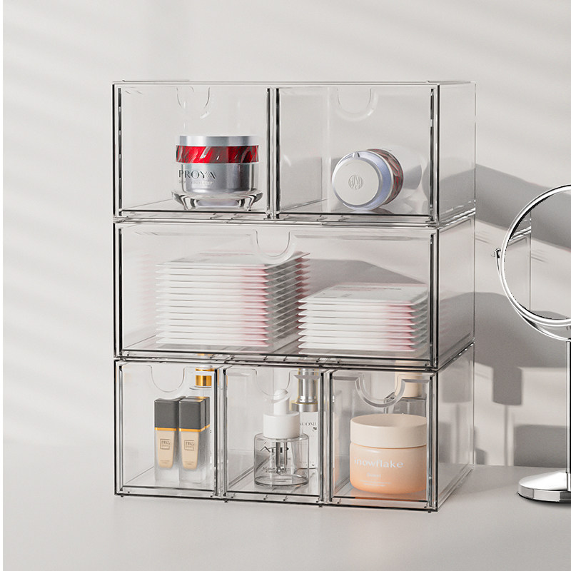 亚克力抽屉式收纳盒透明长方形学生宿舍整理盒杂物桌面防尘置物架