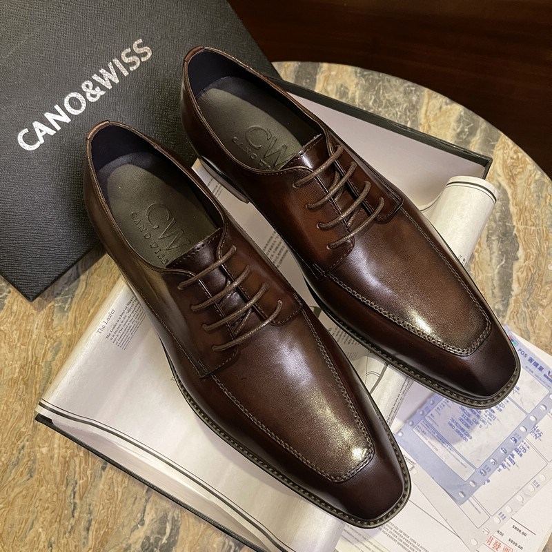 CW夏季正装皮鞋男鞋德比鞋英伦系带透气结婚新郎商务休闲棕色厚底
