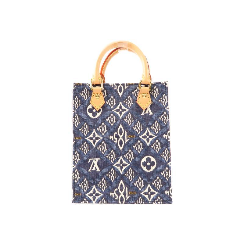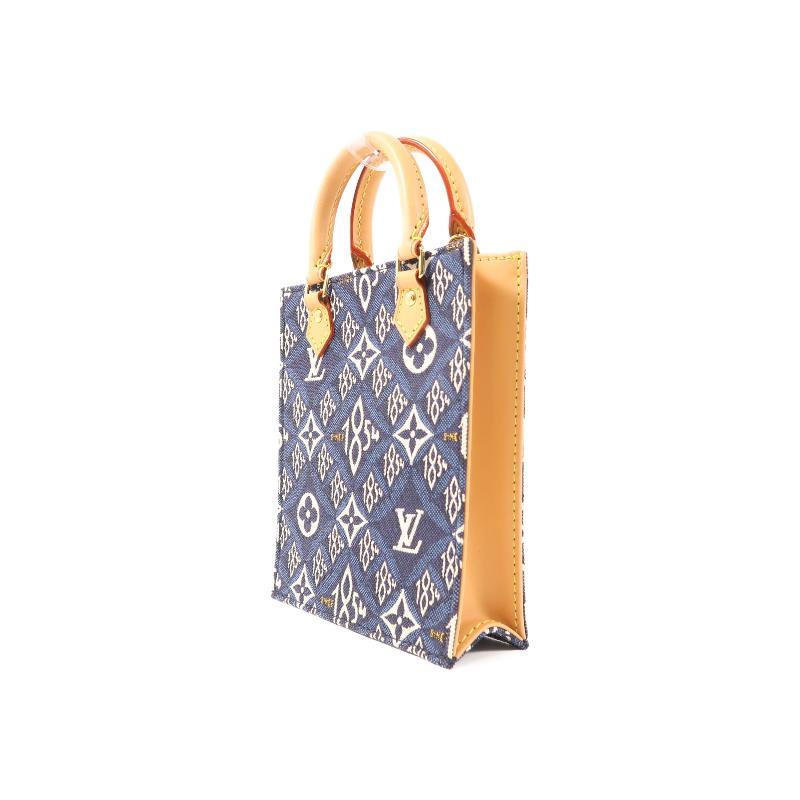 中古LV路易威登女包A级95新Petite Sac Plat琴谱帆布斜挎包蓝色HK