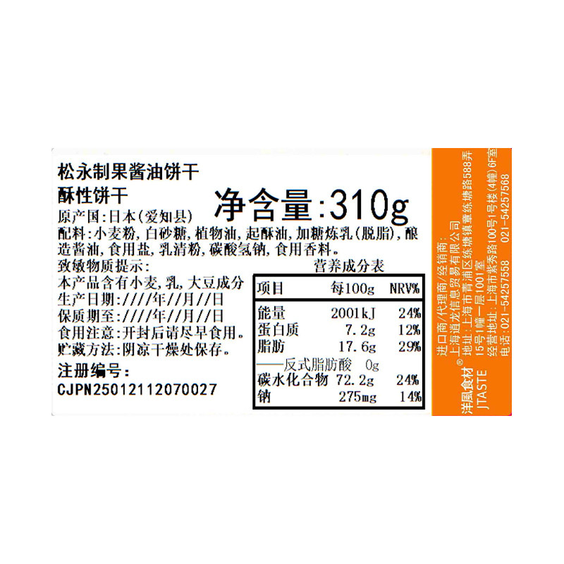 日本原装进口 松永 酱油饼干310g*2袋开学办公室休闲小吃特产早餐