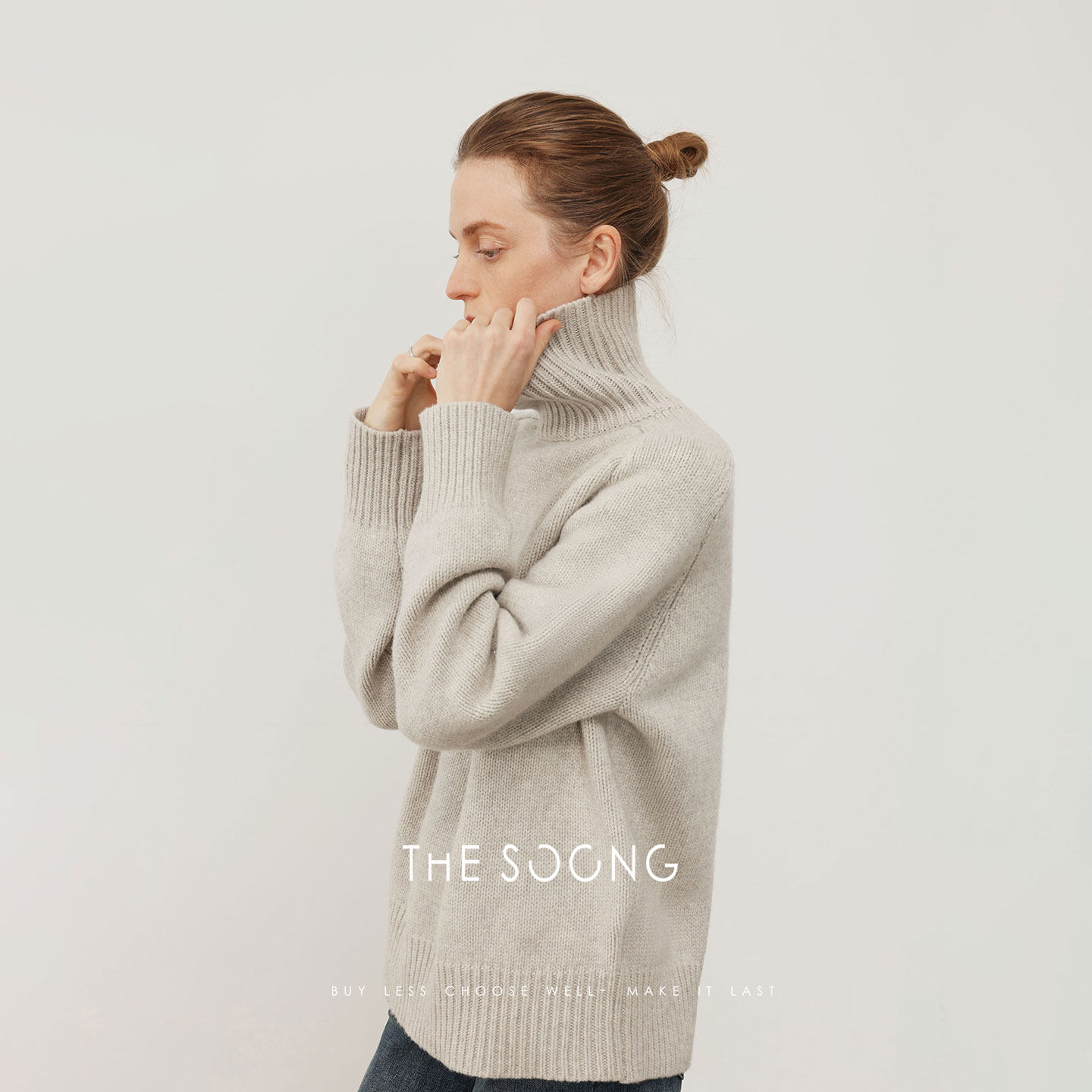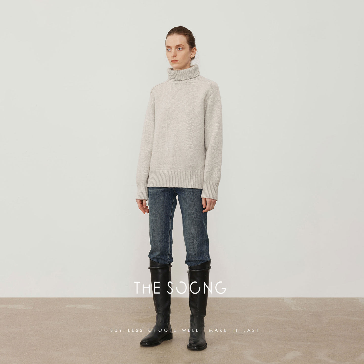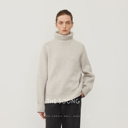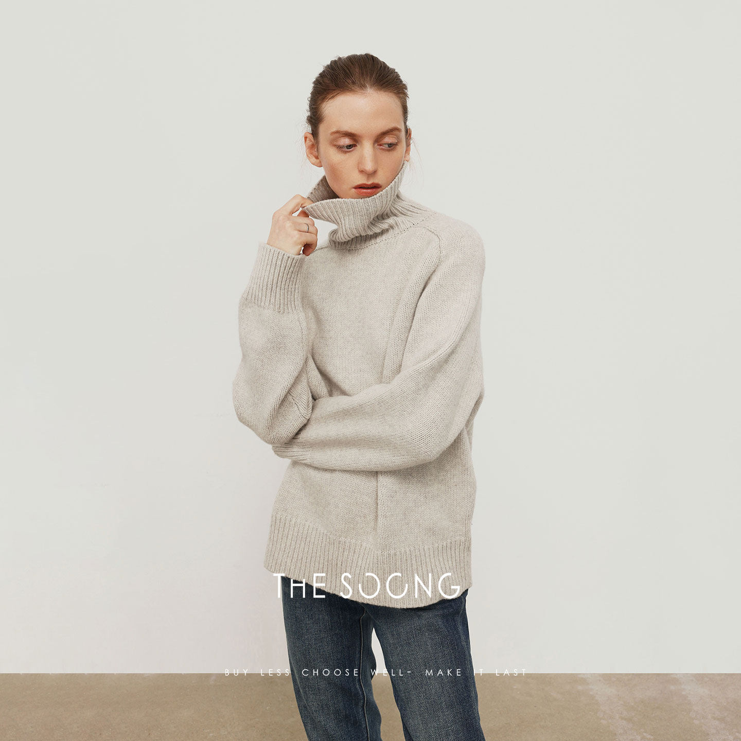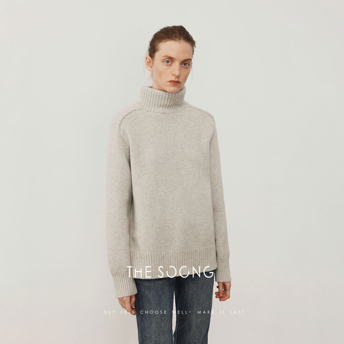 THESOONG/新品极简慵懒风100%羊毛700克高领保暖灰色毛衣女8330